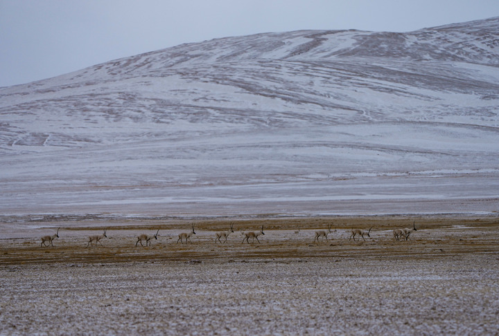 生活在三江源國家公園(唐北區(qū)域)的藏羚羊(2025年2月1日攝)。新華社記者 儲(chǔ)國強(qiáng) 攝