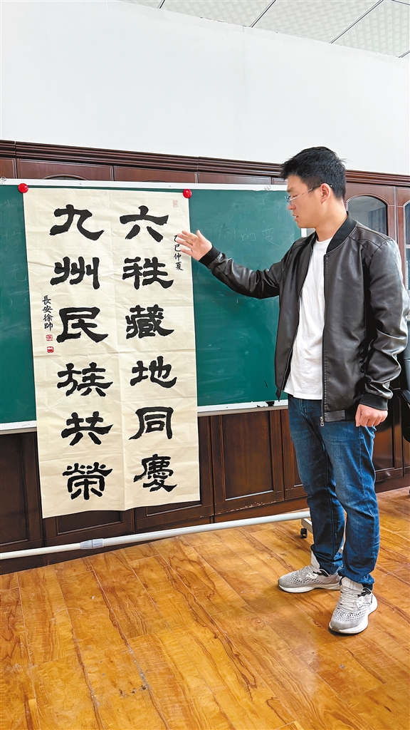 作為西藏自治區(qū)青年聯(lián)合會(huì)委員、西藏自治區(qū)青年書法家協(xié)會(huì)理事,徐帥的作品多次獲獎(jiǎng),但他更珍視的是傳承的意義。他在校園開設(shè)書法篆刻工作室,教藏族同學(xué)刻自己的名字印章,也向當(dāng)?shù)厮嚾苏?qǐng)教藏文篆刻技巧。如今,這位即將畢業(yè)的碩士研究生,最大的愿望是舉辦一場個(gè)人篆刻藝術(shù)展。