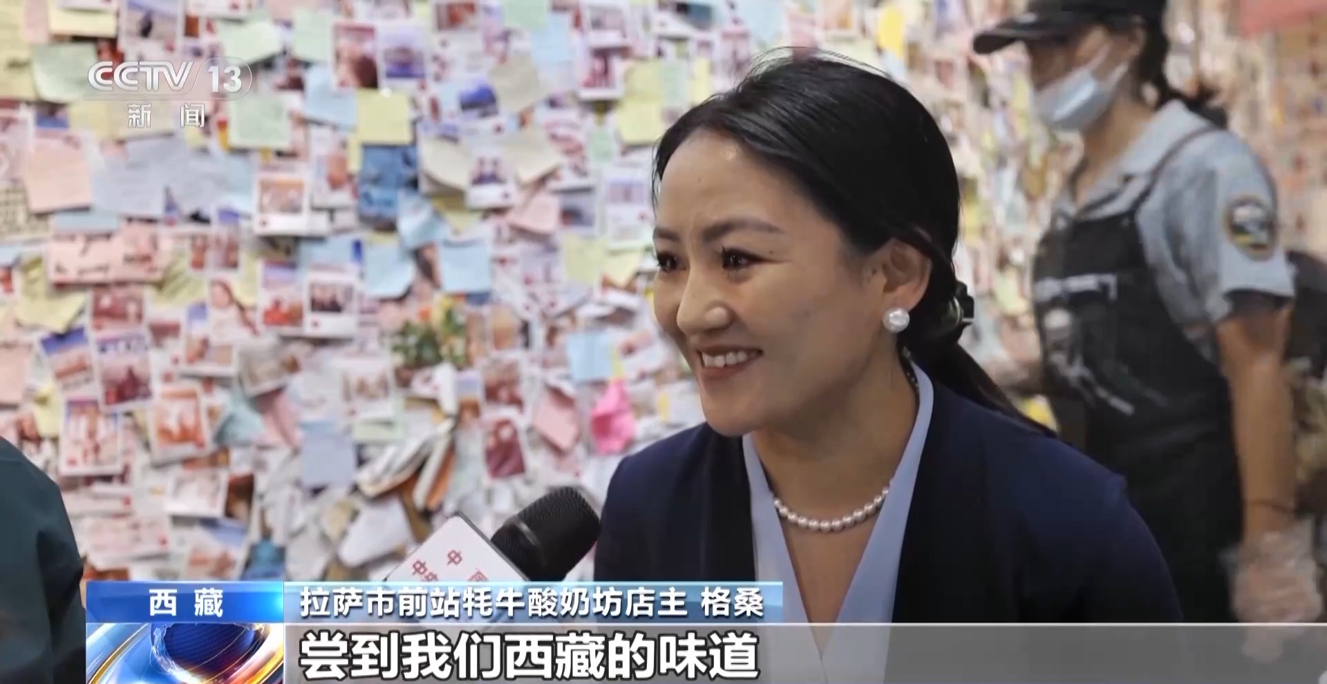 拉薩市前站牦牛酸奶坊店主 格桑:牦牛奶不能夠超過三個小時,超過三個小時就會壞。路好了之后,我們就可以到更遠的地方去采購更新鮮的牦牛奶,包括蛋糕上面的青稞粉是日喀則的,人參果是從那曲運過來的,現(xiàn)在交通便利了,所以我們可以用最地道的食材做最地道的酸奶,也能讓天南地北的游客嘗到我們西藏的味道。