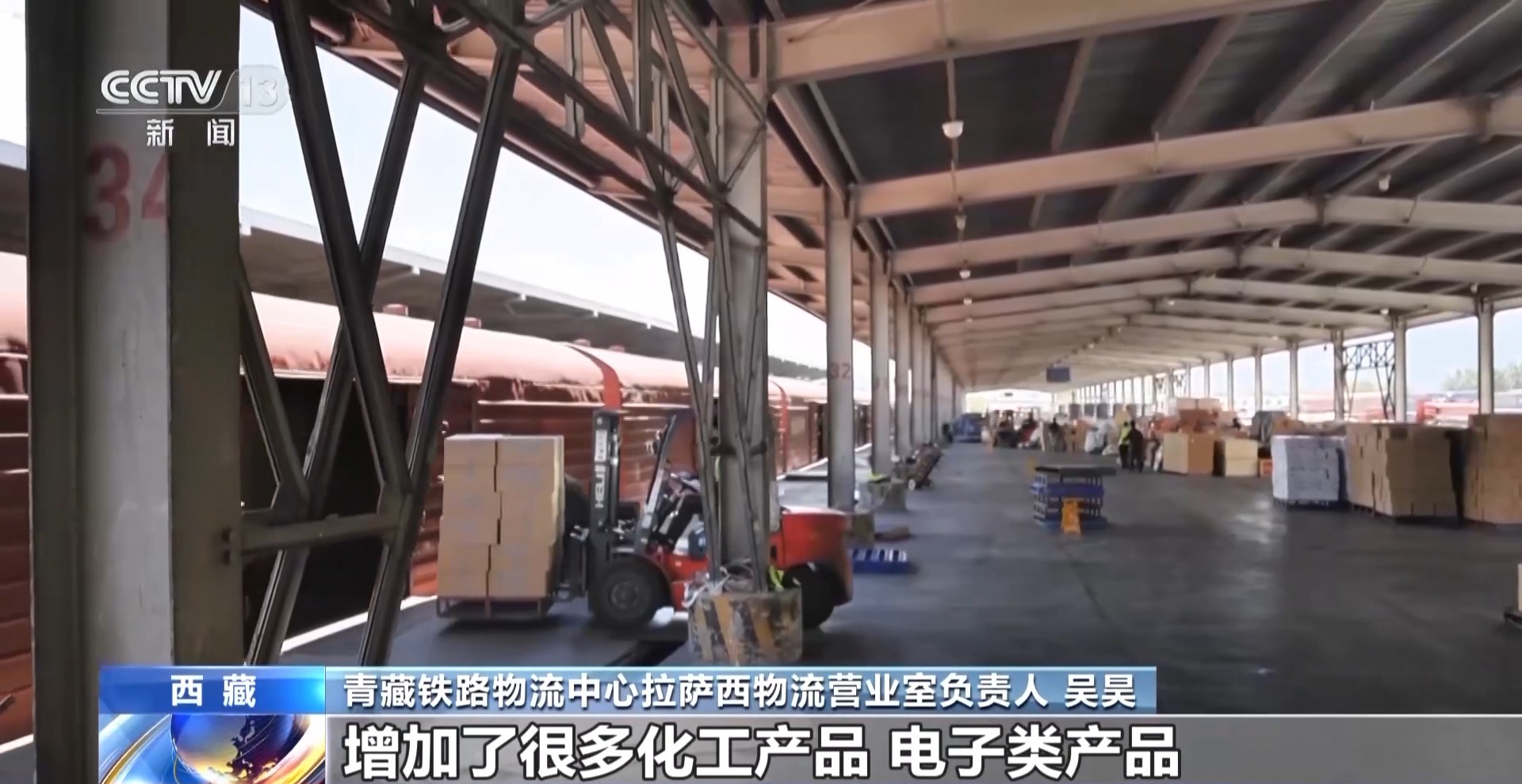 青藏鐵路物流中心拉薩西物流營業(yè)室負責人 吳昊:以前我們這邊到達量還是比較單一的,也就是一些糧食、飲料、建材之類的,現(xiàn)在到達的物品比較多元,增加了很多化工產(chǎn)品、電子類產(chǎn)品。