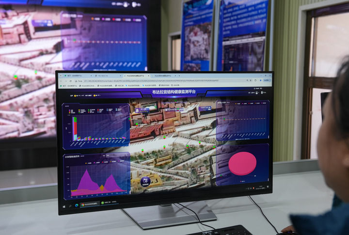 在布達(dá)拉宮監(jiān)測中心,工作人員正忙著通過數(shù)字化平臺,實時監(jiān)控布達(dá)拉宮的“一磚一瓦”。