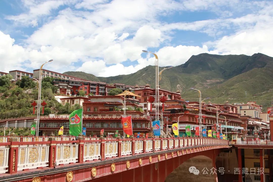 圖為昌都市臥龍橋昌都紅色文化和大慶氛圍交相輝映。記者 平措郎加 貢秋曲措 攝
