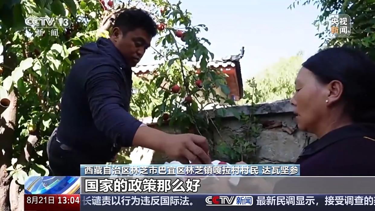 西藏自治區(qū)林芝市巴宜區(qū)林芝鎮(zhèn)嘎拉村村民 達(dá)瓦堅(jiān)參:我對(duì)現(xiàn)在的生活很滿意,國(guó)家的政策那么好。教育上面,孩子從幼兒園開(kāi)始都是“三包”(包吃、包住、包基本學(xué)習(xí)用品)政策,看病90%可以刷醫(yī)保。