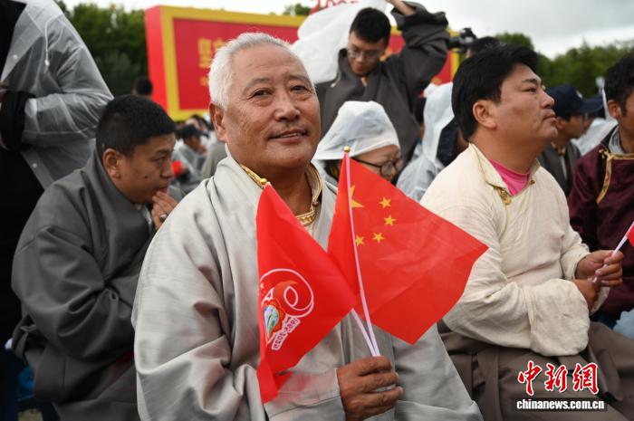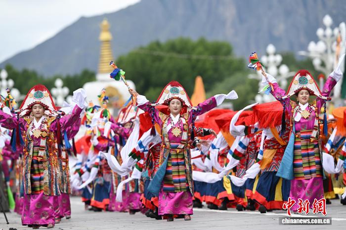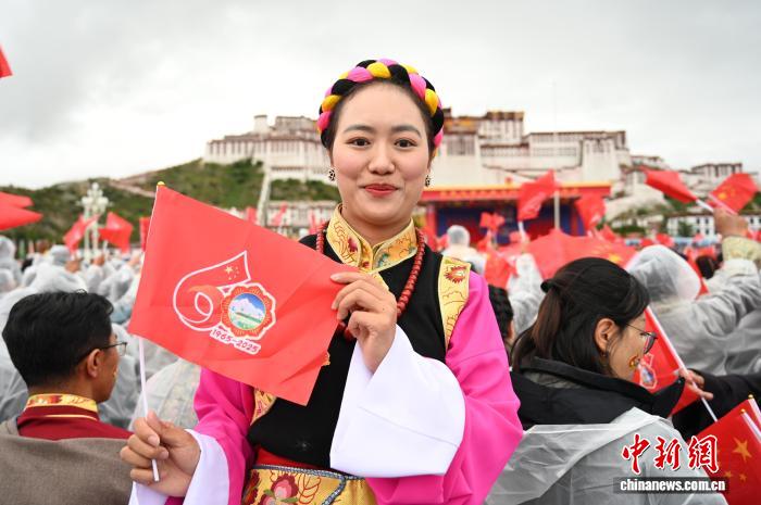 8月21日,拉薩古城居民羅桑群佩在布達(dá)拉宮廣場參加慶?;顒印V行律缬浾?趙朗 攝