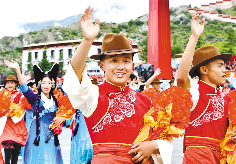 8月21日上午,西藏各族各界干部群眾約2萬人歡聚拉薩市布達拉宮廣場,熱烈慶祝西藏自治區(qū)成立60周年。