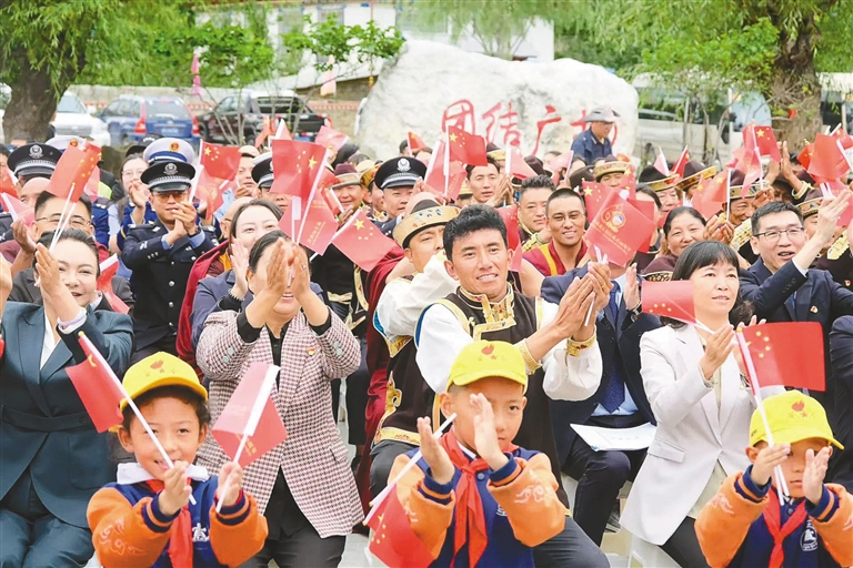山南市隆子縣玉麥鄉(xiāng)干部群眾、派出所民警等來到愛國守邊先進事跡展館,集中收聽收看了慶祝大會直播。玉麥村的大學(xué)生尼瑪次仁說:“當(dāng)看到山南彩車上‘家是玉麥,國是中國’的標語時,我感到非常驕傲與自豪。作為新時代青年,我要傳承好發(fā)揚好愛國守邊精神,時刻準備著到祖國和人民最需要的地方去?!?/p>