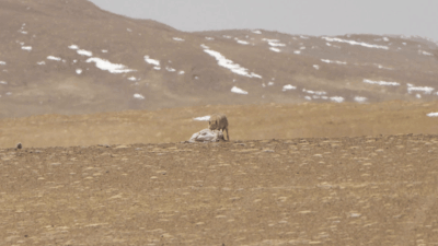 羌塘國(guó)家級(jí)自然保護(hù)區(qū)核心區(qū)中的野狼和已經(jīng)死去的母羊。
