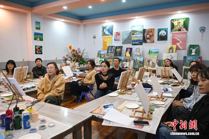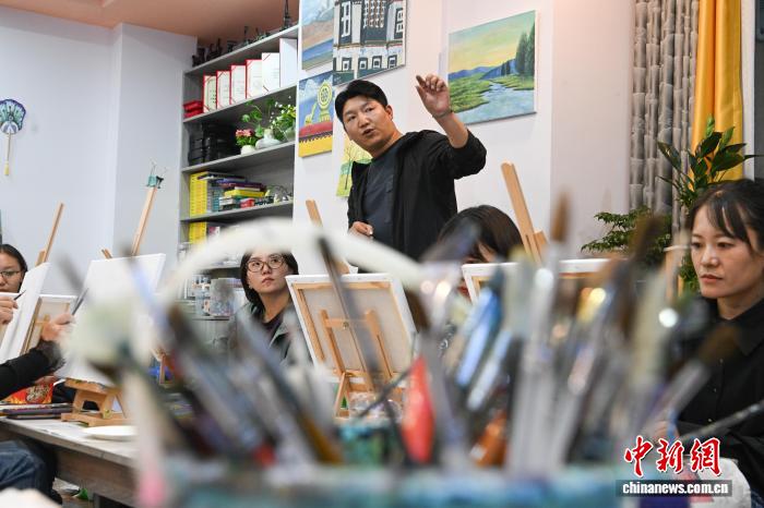 9月1日,2025年西藏自治區(qū)拉薩市第二期“青年夜校”正式開班。圖為夜校學(xué)員在上美術(shù)課。中新社記者 貢嘎來(lái)松 攝