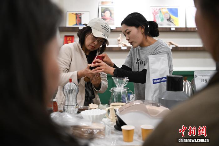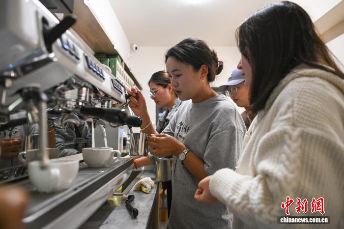9月1日,2025年西藏自治區(qū)拉薩市第二期“青年夜?!闭介_班。圖為夜校學(xué)員在上咖啡制作課。中新社記者 貢嘎來(lái)松 攝