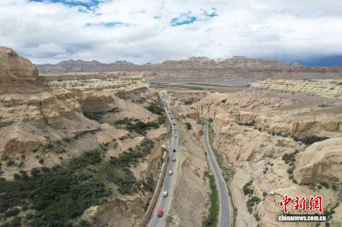 圖為9月2日,參加“天上阿里·云巔自駕”活動(dòng)的游客車隊(duì)行駛在札達(dá)縣土林景區(qū)(無人機(jī)照片)。閆志國(guó) 攝