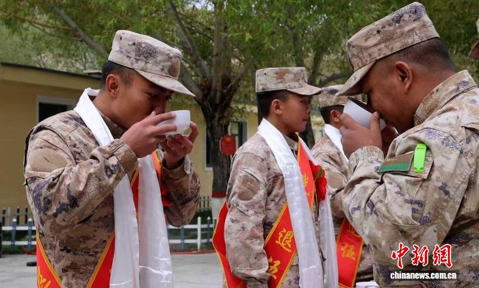 西藏阿里軍分區(qū)某邊防團(tuán)什布奇邊防連9月4日為十余名服役期滿退役的老兵舉行歡送儀式。