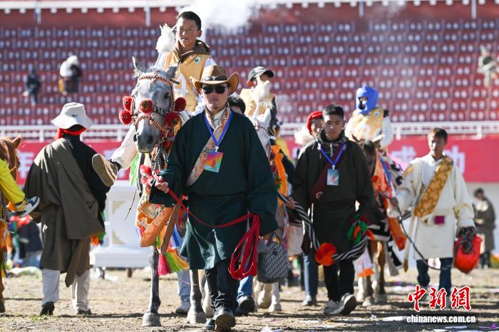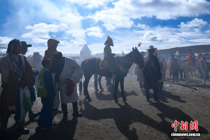 9月7日,在西藏自治區(qū)那曲市格薩爾賽馬場(chǎng),一年一度的恰青賽馬節(jié)迎來傳統(tǒng)大跑決賽。此次比賽賽程10公里,吸引了來自西藏各地市的150名騎手參賽。那曲恰青賽馬節(jié)歷史悠久,已被列入中國國家級(jí)非物質(zhì)文化遺產(chǎn)代表性項(xiàng)目名錄,傳統(tǒng)大跑決賽作為其中的重頭戲,不僅是速度與激情的碰撞,更是那曲傳統(tǒng)文化的精彩展示。圖為賽前馬主跟騎手交流。中新社記者 貢嘎來松 攝