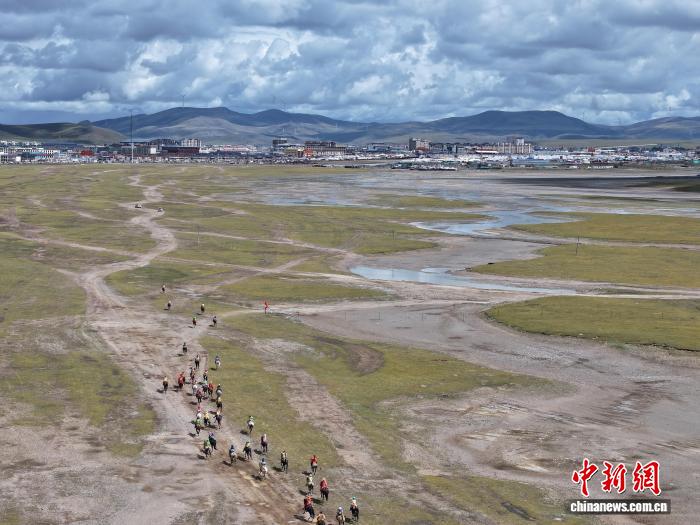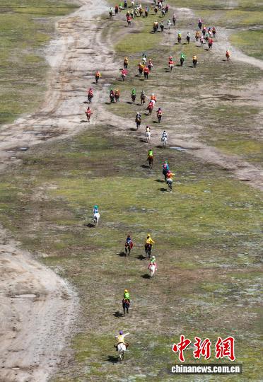 圖為恰青賽馬節(jié)傳統(tǒng)大跑決賽現(xiàn)場(chǎng)(無人機(jī)照片)。中新社記者 貢嘎來松 攝