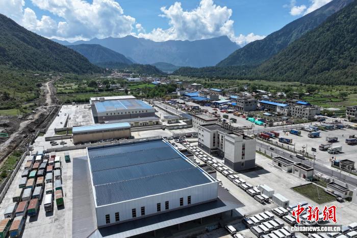 2025年5月25日,隨著邊境貿(mào)易的發(fā)展,西藏吉隆溝達(dá)曼村附近的物流園區(qū)已具規(guī)模。(無人機(jī)畫面)貢嘎來松 攝