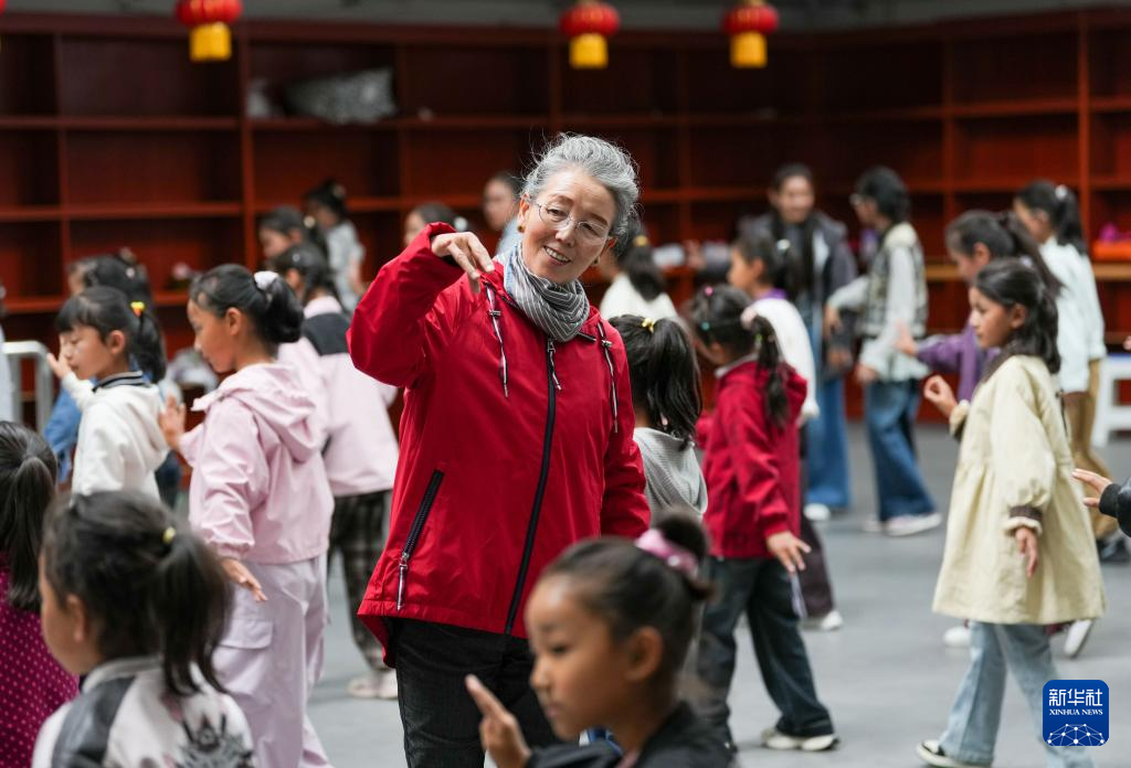 9月14日,巴桑老師在西藏自治區(qū)群藝館帶領(lǐng)孩子們學習藏戲表演。新華社記者 晉美多吉 攝