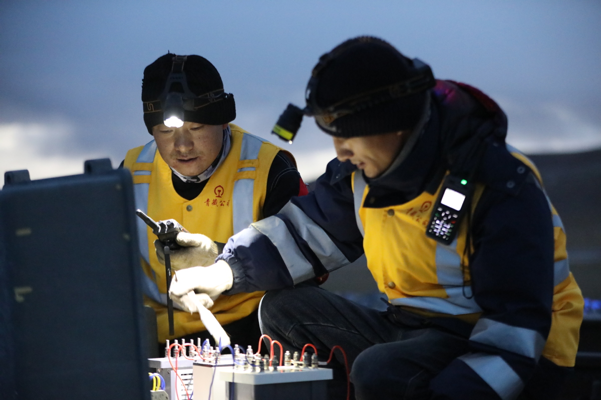 與此同時(shí),在海拔4000多米的火車隧道旁,另一場(chǎng)守護(hù)正在上演。變配電專修工區(qū)副工長(zhǎng)登增次仁正帶領(lǐng)工友,背著沉甸甸的工具包,攀爬在陡峭的護(hù)坡上。寒風(fēng)如刀,他們的腳步卻無(wú)比堅(jiān)實(shí)。