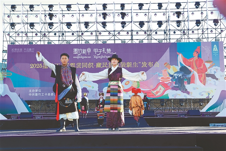 模特在2025墨竹工卡“霓裳同織·藏民族服裝新生”發(fā)布會上展示墨竹服飾。