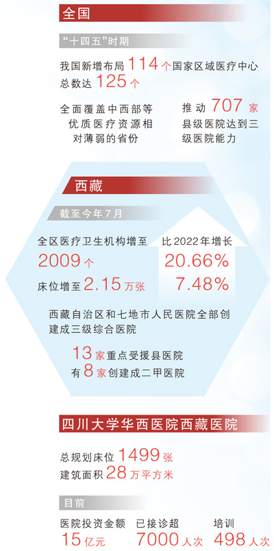 “近年來西藏醫(yī)療條件有了明顯提高,但仍有大量疑難病、危重癥患者需要向外轉診。”四川大學華西醫(yī)院院長羅鳳鳴說,建設國家區(qū)域醫(yī)療中心,就是為了進一步補短板,方便更多群眾在家門口就醫(yī)。