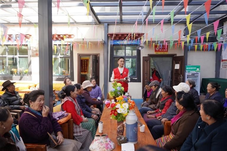 這樣熱鬧的學習場景,源于一份精準適配的“老年興趣菜單”,策門林老年日間照料中心每日開設兩節(jié)知識普及與技能培訓課,內容涵蓋文學閱讀、藏文教學等知識類課程,瑜伽、民歌、朗瑪堆諧等文體課程,還有安全知識科普等實用內容,從“滋養(yǎng)精神”到“強健身體”,全方位覆蓋老人需求。