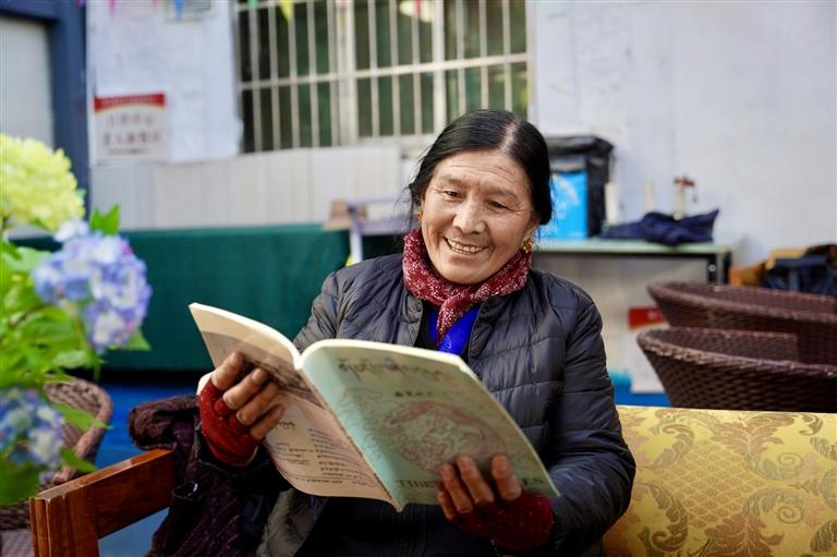 62歲的巴桑卓瑪也在課堂里找回了新的生活樂趣。“以前我不識字,來這兒一年多,不僅學會了讀和寫,還學到了很多新知識?!卑蜕W楷斦f,“現(xiàn)在生活好了,就想多學些新東西,每天都盼著來教室,根本不想待在家里。當初也是聽大家都說這里好,我才來的,現(xiàn)在覺得來對了!”