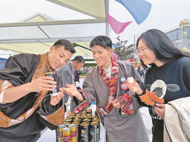 “一直想著有時間就去西藏了解民俗風(fēng)情、品嘗正宗的藏地美食、領(lǐng)略高原風(fēng)景,沒想到這個周末在家門口就了解到了。我品嘗了醇香的酥油茶、正宗的牦牛肉干,更讓我驚喜的體驗是藏藥泡腳,泡完之后身體感到很舒服,明年一定計劃好時間去西藏、去墨竹工卡縣旅游?!蹦暇┦忻駨堈归_心地說。