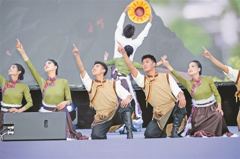 圖為松贊藝術(shù)團帶來的舞蹈節(jié)目《向陽花開》。