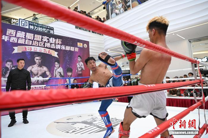 11月15日,2025年西藏自治區(qū)搏擊俱樂部聯(lián)賽暨年度總決賽在拉薩啟幕。本次賽事以“世界之巔·終極對決”為主題,匯聚了拉薩楊洋搏擊俱樂部、西藏恩波格斗、格薩爾格斗、勇士格斗等多家俱樂部的70余名搏擊選手,在海拔 3600 米的高原擂臺上展開巔峰較量。圖為2025年西藏自治區(qū)搏擊俱樂部聯(lián)賽暨年度總決賽比賽現(xiàn)場。中新社記者 貢嘎來松 攝