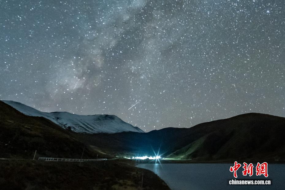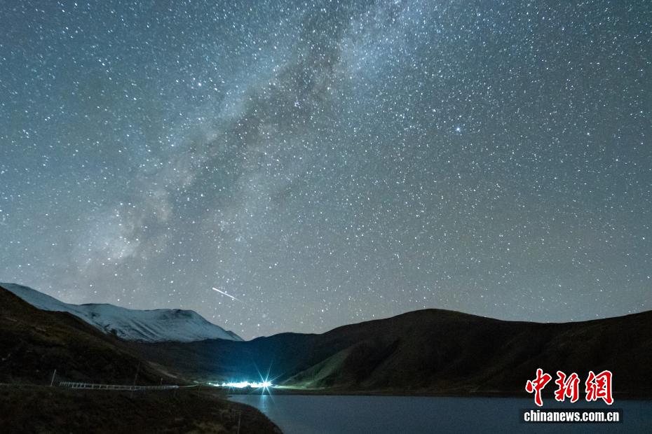 西藏羊卓雍錯(cuò)簡(jiǎn)稱(chēng)羊湖,藏語(yǔ)意為“碧玉湖”,湖面海拔4400多米,是西藏三大“圣湖”之一。近日,今年的獅子座流星雨達(dá)到峰值,每小時(shí)約能看到15顆流星。中新網(wǎng)記者在羊湖畔拍攝到初冬的羊湖銀河及獅子座流星劃過(guò)高原夜空等畫(huà)面。圖為11月16日晚,一顆流星劃過(guò)羊湖湖畔村莊附近的雪山上空。江飛波 攝