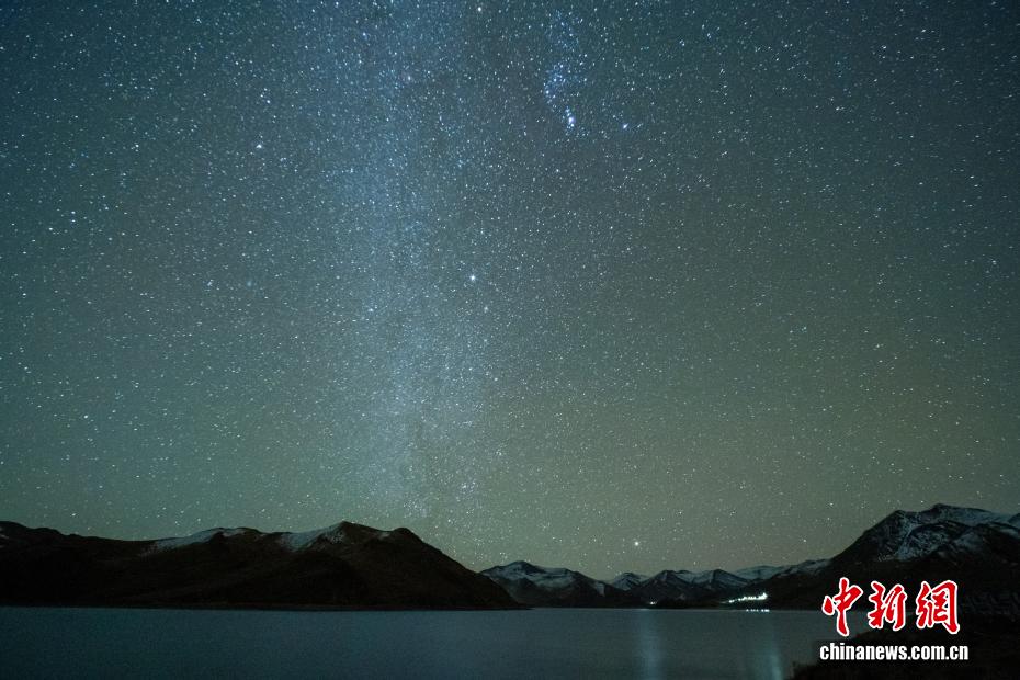 西藏羊卓雍錯(cuò)簡(jiǎn)稱(chēng)羊湖,藏語(yǔ)意為“碧玉湖”,湖面海拔4400多米,是西藏三大“圣湖”之一。近日,今年的獅子座流星雨達(dá)到峰值,每小時(shí)約能看到15顆流星。中新網(wǎng)記者在羊湖畔拍攝到初冬的羊湖銀河及獅子座流星劃過(guò)高原夜空等畫(huà)面。圖為11月16日,夜幕下的羊湖和銀河風(fēng)光。江飛波 攝