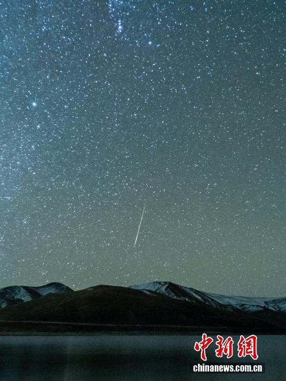 西藏羊卓雍錯(cuò)簡(jiǎn)稱(chēng)羊湖,藏語(yǔ)意為“碧玉湖”,湖面海拔4400多米,是西藏三大“圣湖”之一。近日,今年的獅子座流星雨達(dá)到峰值,每小時(shí)約能看到15顆流星。中新網(wǎng)記者在羊湖畔拍攝到初冬的羊湖銀河及獅子座流星劃過(guò)高原夜空等畫(huà)面。圖為11月17日凌晨,一顆流星俯沖墜向羊湖附近的雪山。江飛波 攝