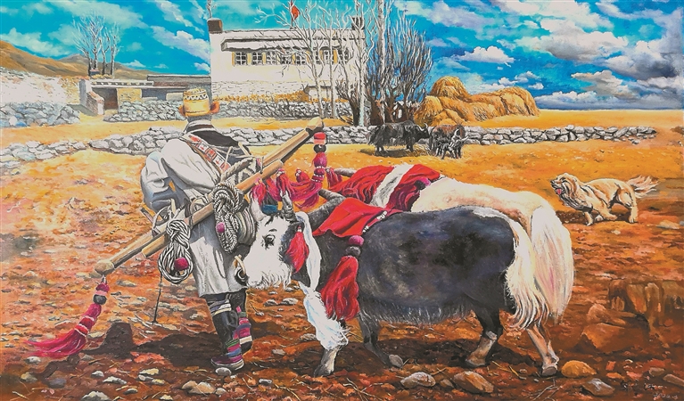 談起為什么不繼續(xù)從事更為熟悉的攝影行業(yè),而要在花甲之年挑戰(zhàn)自己。鄒文江說:“我親眼見證了西藏如何從封閉走向開放,從貧困走向小康,西藏人民的生活是如何從食不果腹到‘全面小康’。父親那一代畫家主要描繪西藏的傳統(tǒng)風(fēng)貌,而我想展現(xiàn)的是西藏的發(fā)展變化,想把自己眼中的‘新西藏’展現(xiàn)給更多人看?!?/p>