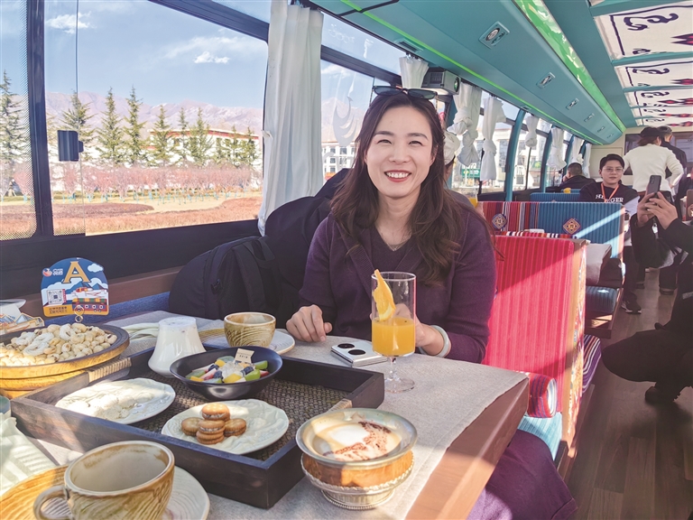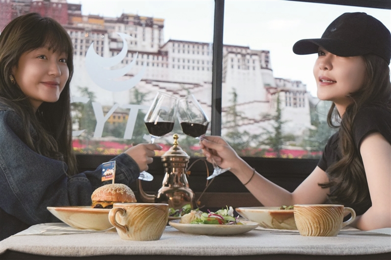 為了讓游客和市民能夠品嘗到最地道的拉薩美食,觀光巴士運營方與拉薩多家知名餐廳展開了深度合作。乘車期間,游客可以圍爐煮茶,感受那份溫馨與愜意,品嘗果茶的清甜、干果的香脆與甜品的綿密交織在口中的美妙滋味;還可以喝上一杯用高原牦牛奶與醇厚紅茶小火慢熬而成的甜茶,搭配上融合藏式元素的精致茶點,仿佛瞬間穿越到了拉薩當(dāng)?shù)厝说纳钪?,沉浸式體驗他們的悠閑午后時光。