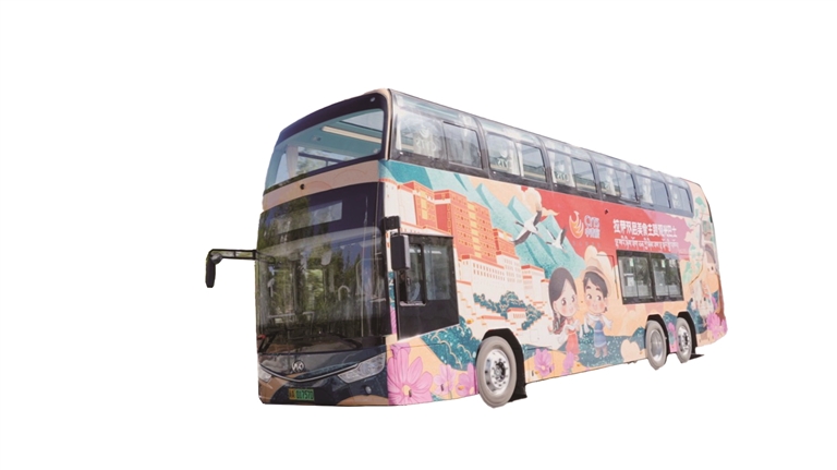 拉薩雙層美食主題觀光巴士車身以中國紅為主色調(diào),點綴著黑頸鶴、拉薩兒童笑臉及布達拉宮等標(biāo)志性景觀圖案,每一處細節(jié)都散發(fā)著濃郁的地域文化氣息。