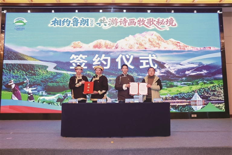 現(xiàn)場,還舉行了簽約儀式,魯朗東巴才村、羅布村、扎西崗村村委會代表與拉薩多家優(yōu)質(zhì)旅行社簽訂合作意向協(xié)議。雙方圍繞文旅深度融合發(fā)展趨勢,聚焦沉浸式體驗、定制化旅游等細(xì)分領(lǐng)域展開深入交流,達(dá)成多項合作共識,將進(jìn)一步拓寬魯朗景區(qū)的客源渠道,提升品牌影響力。