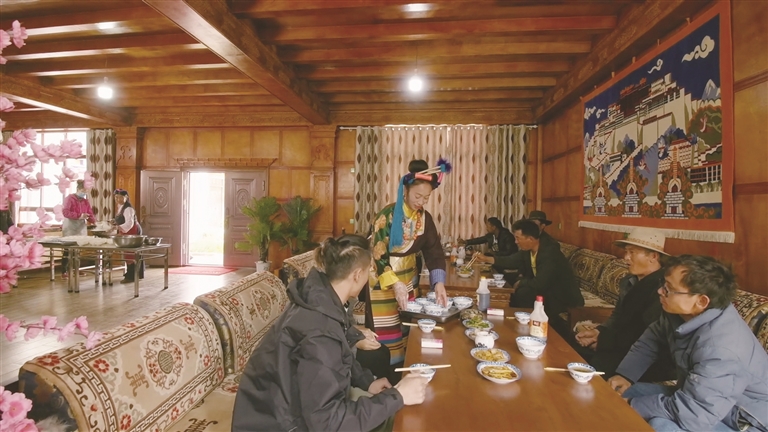 作為自治區(qū)級非遺傳承人、芒康縣“婦女致富帶頭人”的卓瑪拉姆,于2010年開辦鹽井果拉叢農家樂,憑借著正宗的加加面風味和熱情的服務,逐漸積累了口碑。2012年,在各級政府的支持下,她采用“民族特色餐飲+鄉(xiāng)村旅游接待”的經營模式,生意日益紅火。2017年,通過貸款300萬元、自籌160萬元翻建了農家樂,將其升級為綜合型的民族特色餐飲店,經營規(guī)模大幅擴大,最多時日接待游客達300余人。