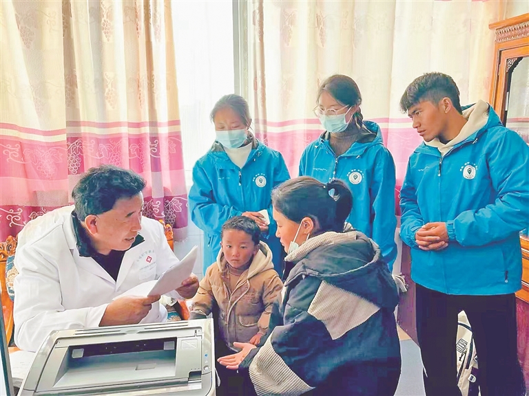 在志愿服務(wù)環(huán)節(jié)中,學(xué)生們體會(huì)到了付出的快樂。在日喀則市定日縣震區(qū)安置點(diǎn),他們消毒防疫、發(fā)放藥品、疏導(dǎo)群眾情緒;在鄉(xiāng)村社區(qū),他們?yōu)榇迕駵y(cè)量血壓、普及健康常識(shí)、設(shè)置手機(jī)地震預(yù)警;在知識(shí)小課堂上,為學(xué)生補(bǔ)課輔導(dǎo)、開展環(huán)保宣傳。這些看似瑣碎的小事,讓他們切實(shí)感受到了學(xué)醫(yī)者的社會(huì)價(jià)值,也錘煉了他們溝通協(xié)作、應(yīng)急應(yīng)變的實(shí)戰(zhàn)能力。