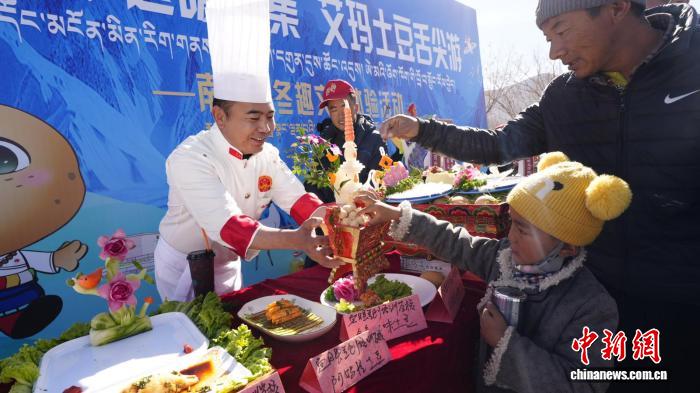 圖為艾瑪土豆舌尖游活動(dòng),游客品嘗特色美食。南木林縣文化和旅游局供圖。