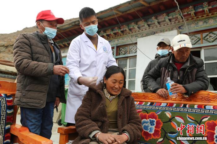 資料圖為藏醫(yī)醫(yī)師吾金為村民做傳統(tǒng)藏醫(yī)散針療法。倫珠澤仁 攝