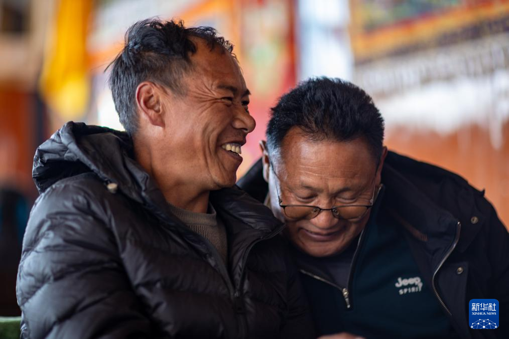 1月5日,村民在定日縣長(zhǎng)所鄉(xiāng)森嘎村一家甜茶館里聊天。新華社記者 姜帆 攝