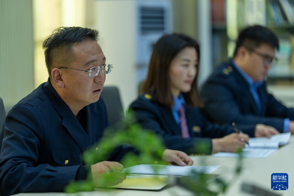 1月6日,拉薩基礎(chǔ)設(shè)施段安全生產(chǎn)指揮中心主任王義虎(左1),正在對(duì)當(dāng)日重點(diǎn)工作進(jìn)行重點(diǎn)提示。新華社記者 旦增尼瑪曲珠 攝