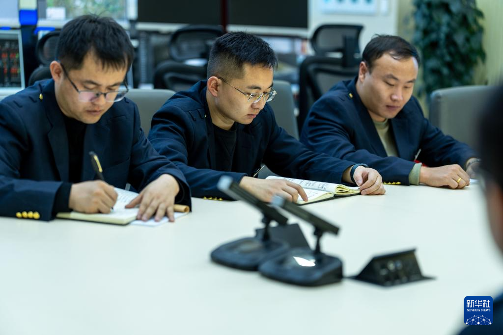 1月6日,拉薩基礎(chǔ)設(shè)施段安全生產(chǎn)指揮中心電力調(diào)度員祁增海(左)、日常調(diào)度員赫占榮(中)、電力調(diào)度員趙忠林(右)進(jìn)行業(yè)務(wù)學(xué)習(xí)。新華社記者 旦增尼瑪曲珠 攝