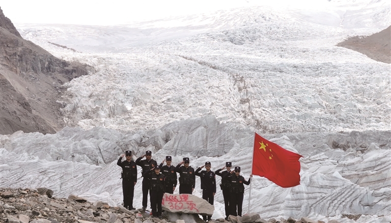 普瑪江塘邊境派出所民警開展冰川巡邏。 徐道超 攝圖由山南邊境管理支隊提供