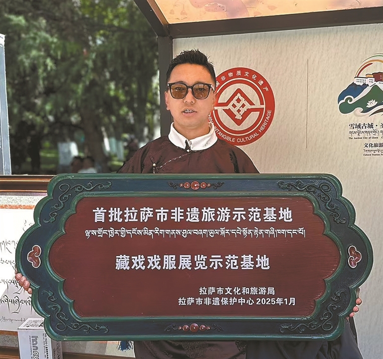 ——2022年,他成功入選2022年度鄉(xiāng)村文化和旅游帶頭人支持項目,成為全國鄉(xiāng)村文旅發(fā)展的示范引領者。更值得驕傲的是,合作社精心制作的作品被北京工藝美術館正式收藏,讓西藏非遺技藝走進國家級藝術殿堂,彰顯了藏戲服飾深厚的文化價值與獨特的藝術魅力;