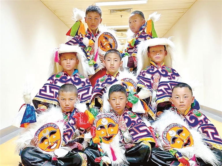 作為藏戲藝術的重要載體,色彩繽紛的藏戲服飾、神秘獨特的面具常讓人眼前一亮,但其制作技藝用料考究、形制莊重,極其考驗匠人的功底。拉薩市達孜區(qū)雪鄉(xiāng)扎西崗村的阿古家族,是當?shù)赜忻牟貞蚍椫谱魇兰?,憑借精湛手藝傳承五代,有著數(shù)百年的歷史。