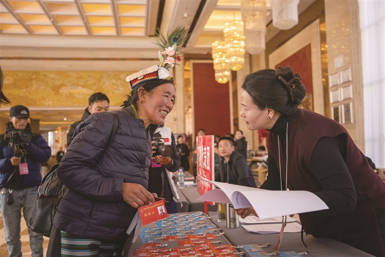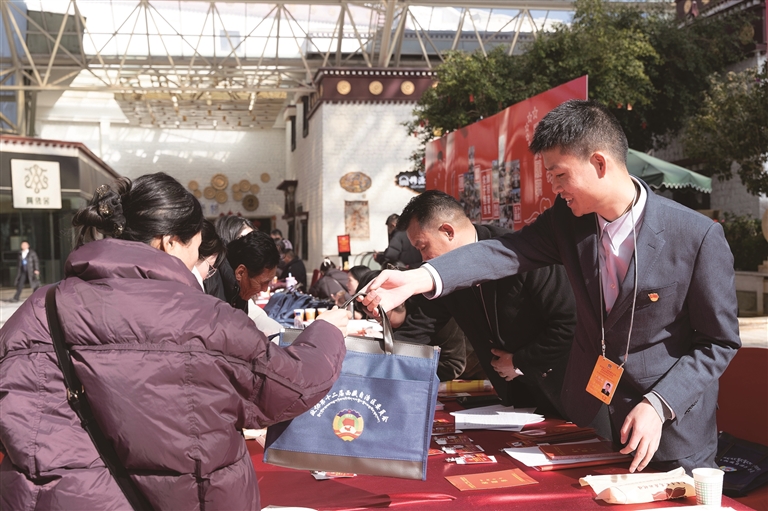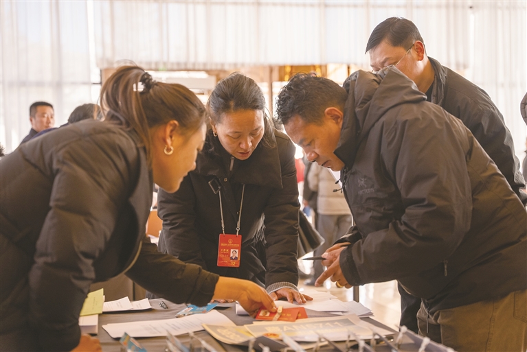 在政協(xié)委員報(bào)到處,工作人員提前就位,細(xì)致講解會(huì)議安排,用貼心服務(wù)為委員們履職保駕護(hù)航。