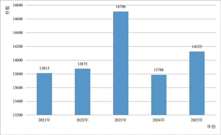 2021年—2025年全區(qū)檢察機(jī)關(guān)辦案總量變化趨勢圖