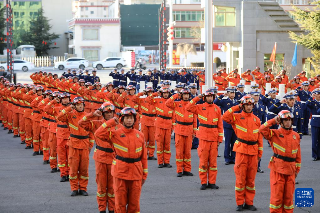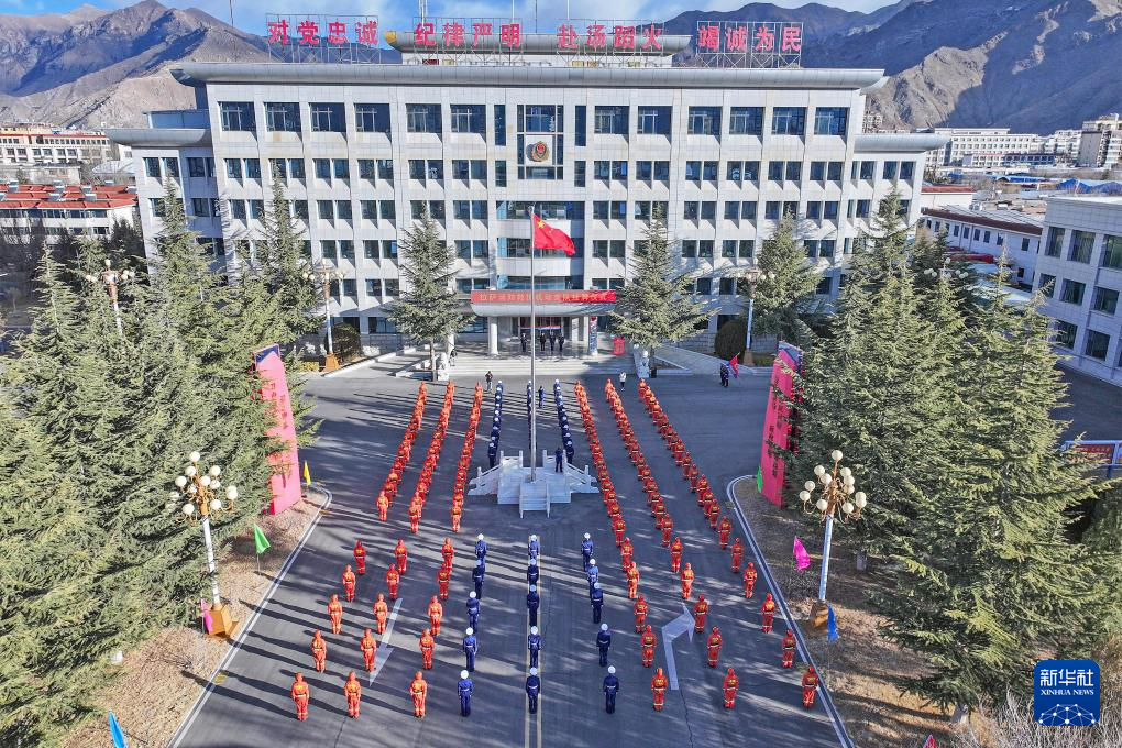 這是2月5日拍攝的拉薩消防救援機(jī)動支隊掛牌儀式現(xiàn)場。新華社發(fā)(鄭龍 攝)