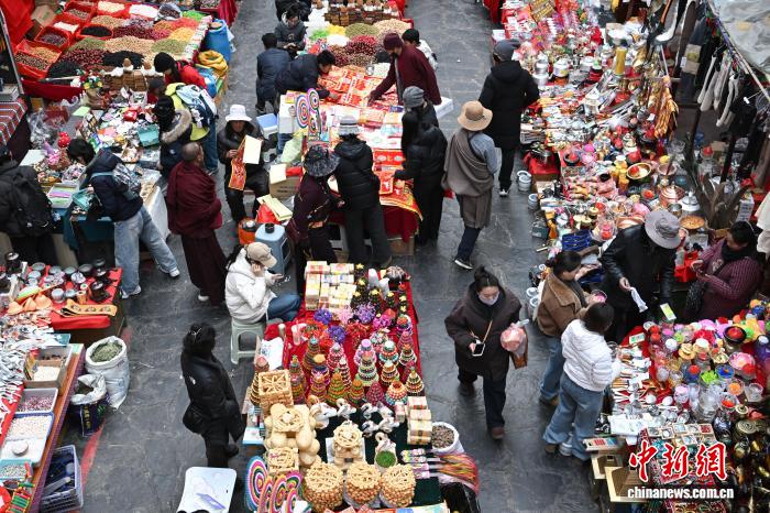 2月9日,隨著春節(jié)、藏歷新年臨近,西藏拉薩市八廓商城等年貨市場人頭攢動。市民忙著挑選酥油花、香布、切瑪盒等傳統(tǒng)年貨,市場內(nèi)購銷兩旺、喜慶熱鬧,古城拉薩處處洋溢著濃厚的節(jié)日氛圍。