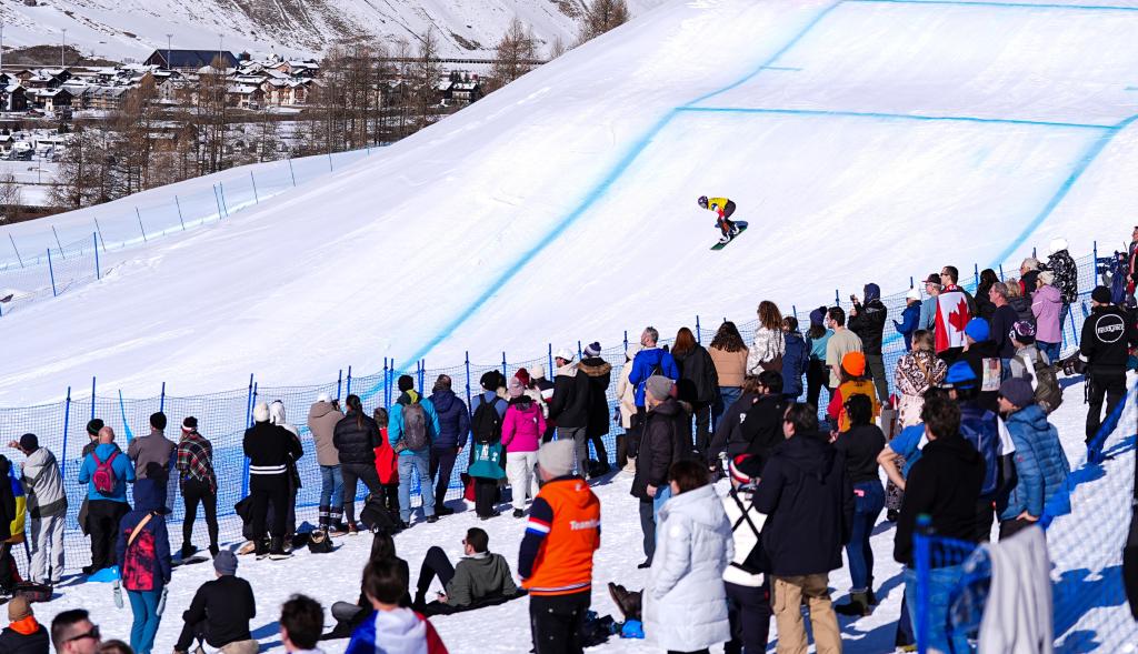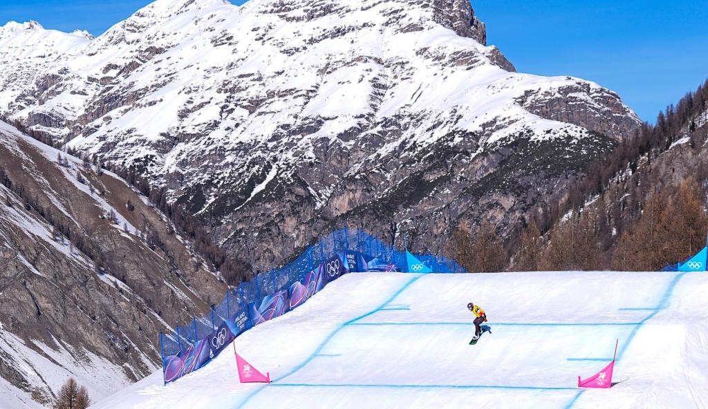 13日,米蘭冬奧會單板滑雪女子障礙追逐比賽在這里進(jìn)行。22歲的藏族姑娘擁青拉姆滑過終點線后停住,扶了扶雪鏡,站著緩了一會兒。她沒有立刻去看成績,而是抬頭望向剛剛滑下來的那條賽道——半壁、跳臺、彎道一段段延伸向山腳。