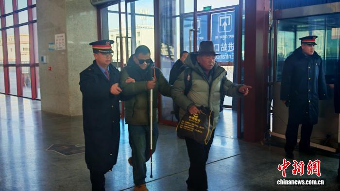 圖為日喀則站客運工作人員幫扶盲人進站候車。拉薩車務(wù)段 供圖